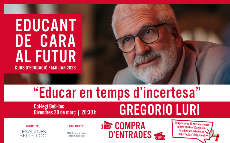 El próximo viernes 20 de marzo a las 20:30 h, el Col·legi Bell-lloc acogerá una nueva edición de Educant de cara al futur, una iniciativa de formación y reflexión impulsada por Les Alzines Bell-lloc. En esta ocasión, el invitado será el pedagogo, filósofo y escritor Gregorio Luri, que pronunciará la conferencia “Educar en tiempos de […]