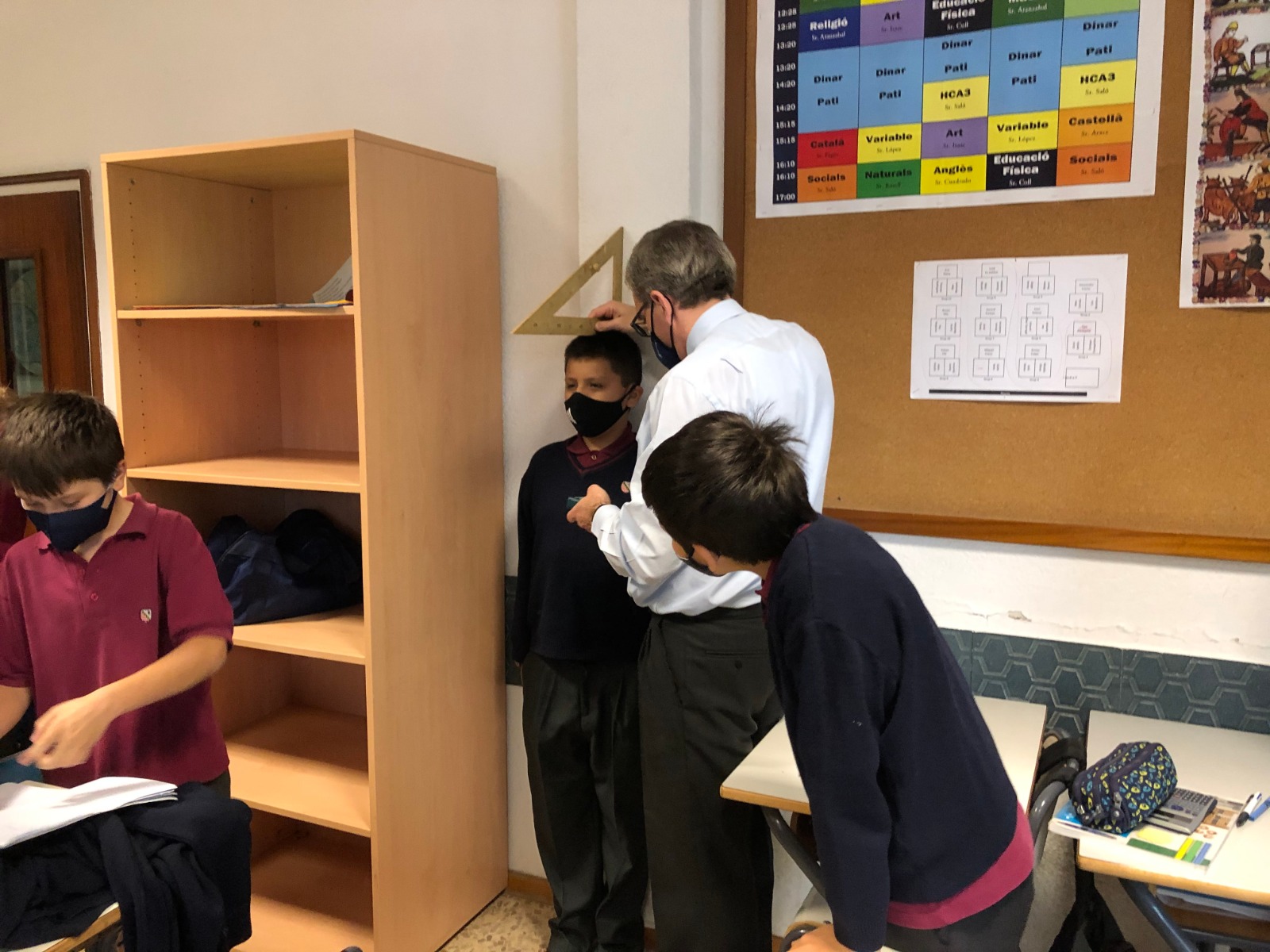 Per poder generar preguntes rellevants des d’un punt de vista matemàtic, és necessari que l’alumne sàpiga destriar quines preguntes admeten un tractament matemàtic i quines no. És a dir, quins són els tipus de respostes que les matemàtiques poden oferir en funció de la situació tractada. Durant aquesta setmana, els alumnes de 1r d’ESO, estan treballant diferents competències de l’àmbit matemàtic a través d’un projecte transversal contextualitzat en les mesures de talla i pes de la seva pròpia classe.